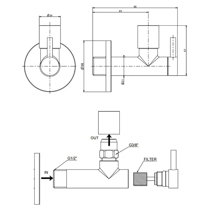 Gessi Rilievo Total Look Запорный кран-фильтр под раковину с подводом воды на 1/2, цвет: Chrome 01411#031