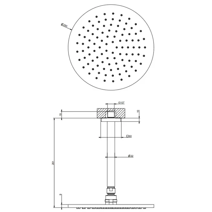 Gessi Rilievo Потолочная душевая головка на 1/2" 250x250 мм, длина изгот. под заказ (105 - 1855 мм), цвет: хром