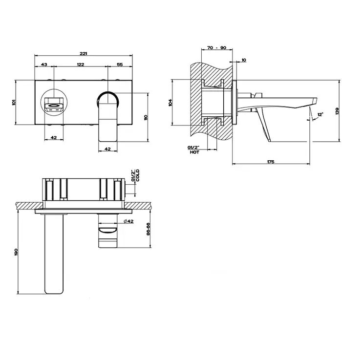 Gessi Rilievo Встраиваемый смеситель для раковины с изливом 17,5 cм, цвет nero XL 59092#299