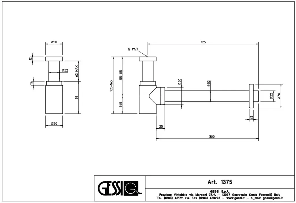Gessi Сифон для биде, цвет: Brushed Brass PVD 01375#727