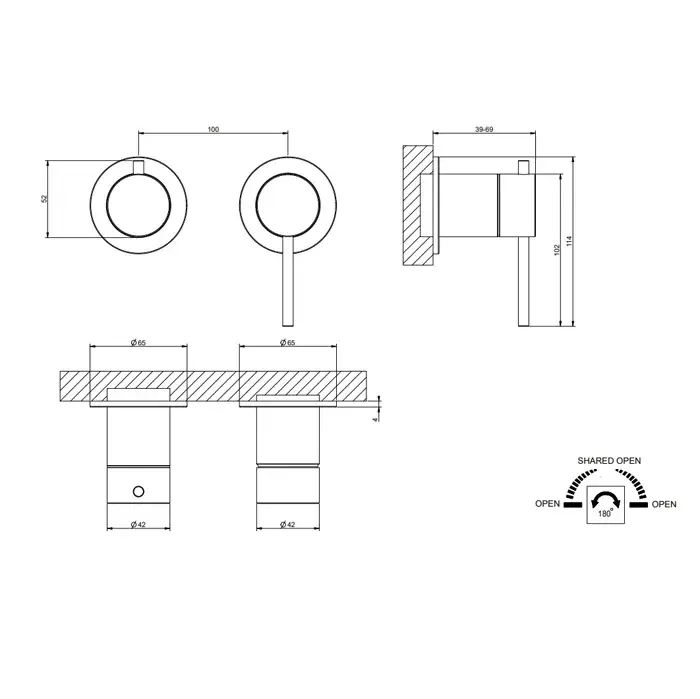 Gessi Смеситель для душа встраиваемый на 2 потребителя, внешняя часть, цвет: steel brushed 54077#239