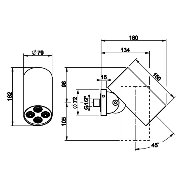 Gessi Spotwater Душевая головка для настенного крепления, с регулируемым углом наклона. РАСПЫЛЕНИЕ., цвет: хром