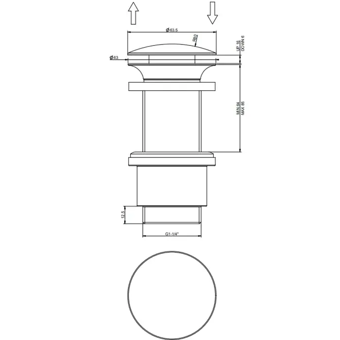 Gessi Technical Accessories Донный клапан для раковины Stop&Go на 1 1/4, цвет: Black XL 01420#299