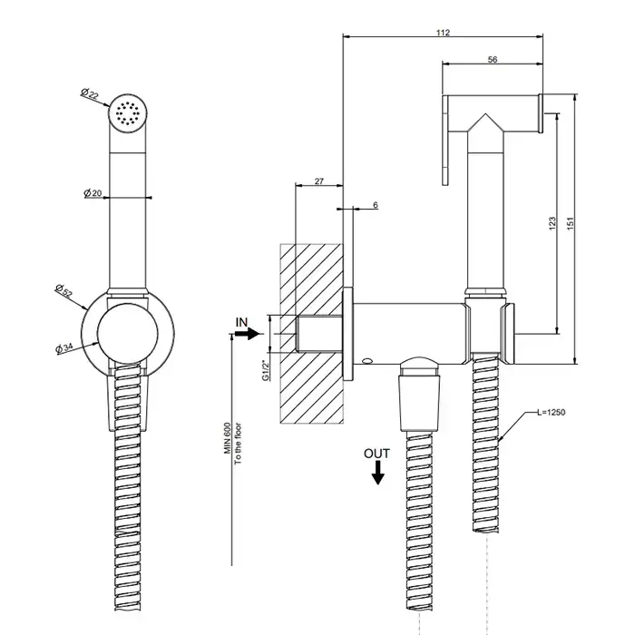 Gessi Tradizione Гигиенический душ, настенный, цвет: Black Metal Brushed PVD
