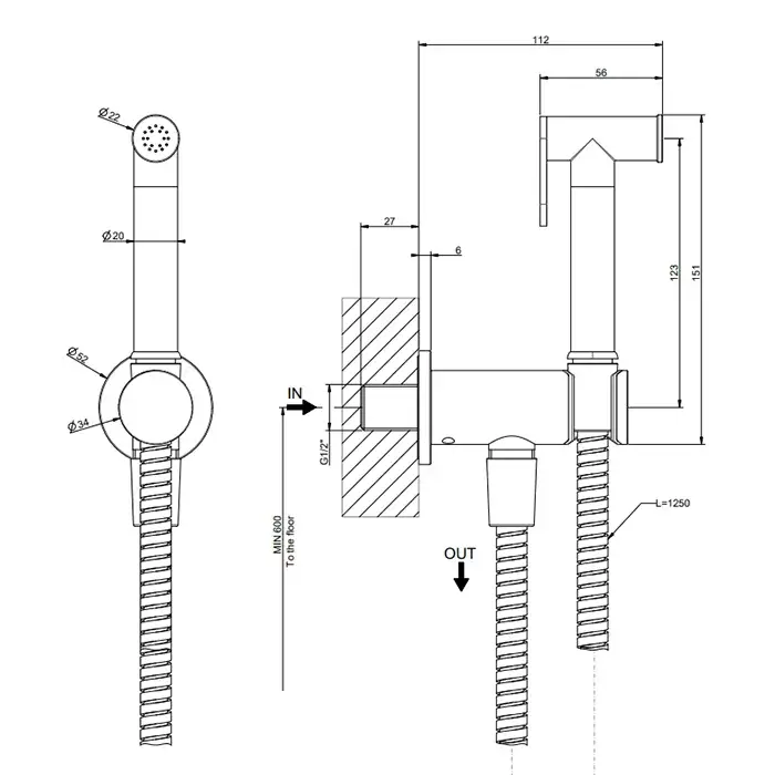Gessi Tradizione Гигиенический душ, держатель с подводом воды, шланг, цвет: black metal brushed PVD 14331#707