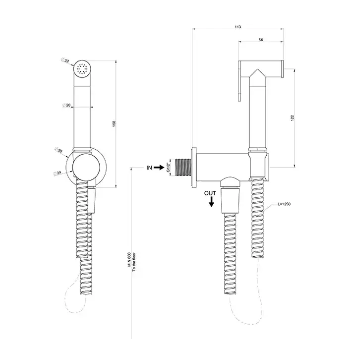Gessi Tradizione Гигиенический душ, держатель с подводом воды, шланг 125 см, цвет: chrome brushed 14331#147