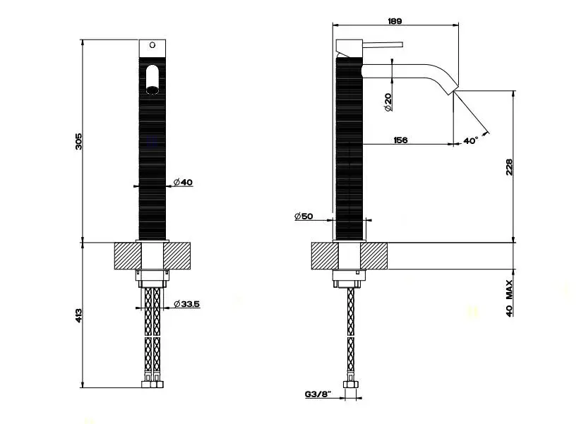 Gessi Trame Смеситель для раковины высокий, без донного клапана. цвет: шлифованная сталь