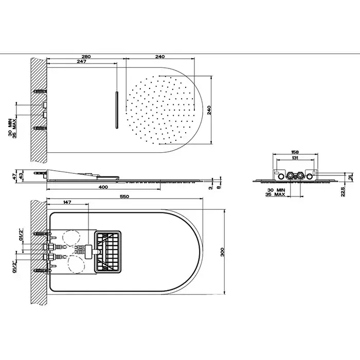 Gessi Tremillimetri Верхний душ QUADRO 30х55см., настенный, 2 режима: тропический ливень, водопад, цвет: Black Metal Brushed PVD