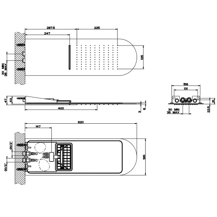 Gessi Tremillimetri Верхний душ QUADRO 30х55см., настенный, 2 режима: тропический ливень, водопад, цвет: Black Metal Brushed PVD