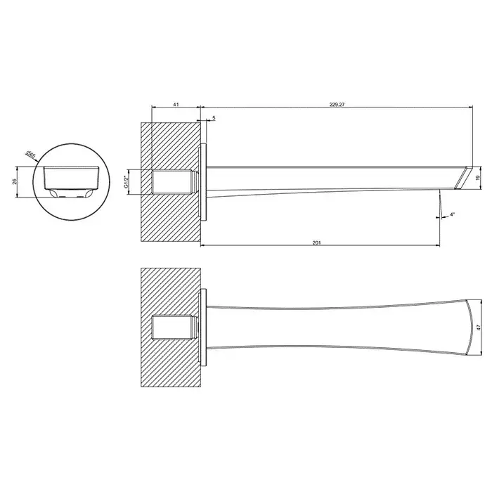 Gessi Ventaglio Излив настенный для ванны 20,1 см, цвет: warm bronze brushed PVD 72103#726