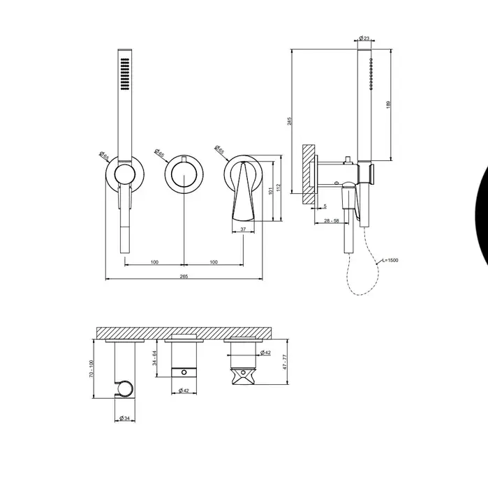 Gessi Ventaglio Смеситель для душа встраиваемый, внешняя часть, с ручным душем, цвет: matte black 72036#299