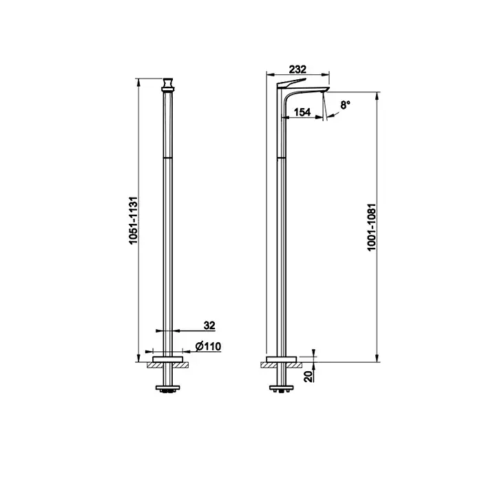 Gessi Ventaglio Смеситель для раковины напольный, высота излива 108,1 см, цвет: matte black 72095#299