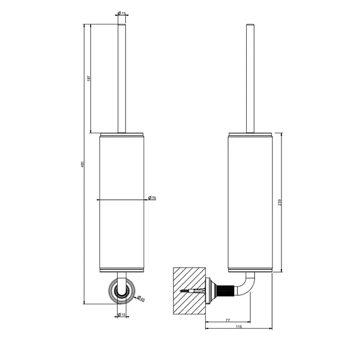 Gessi Venti20 Ершик для унитаза подвесной с латунной колбой, цвет: хром/белый 65419#031