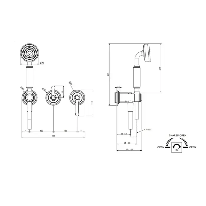 Gessi Venti20 Смеситель для ванны напольный, двухвентильный, с ручным душем и шлангом 1500 мм., внешняя часть, цвет: хром