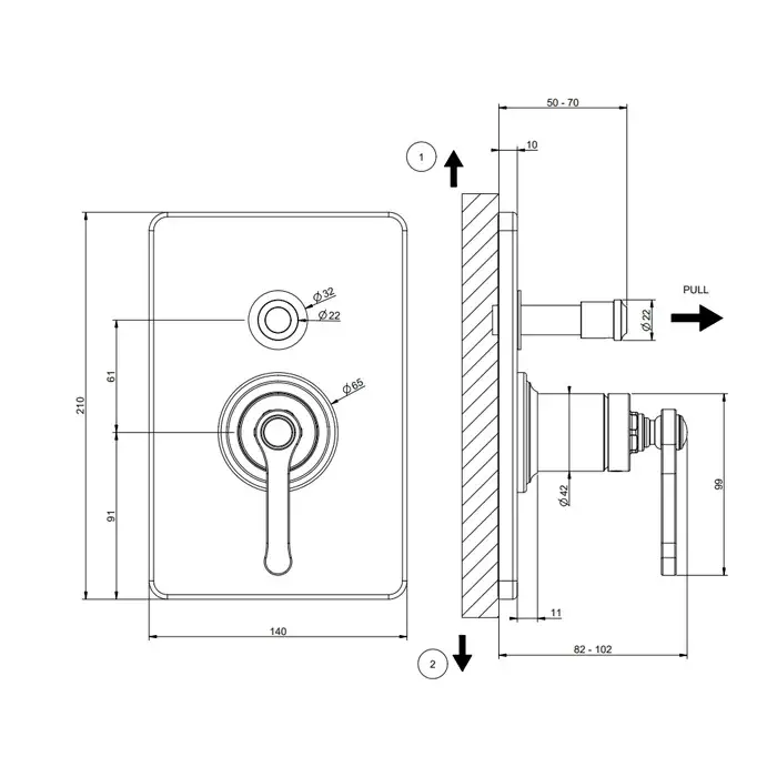 Gessi Venti20 Смеситель для раковины настенный, встраиваемый, однорычажный, излив 243 мм., внешняя часть, цвет: хром