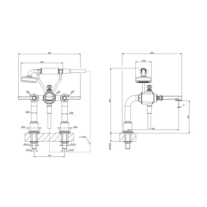 Gessi Venti20 Смеситель для ванны напольный, двухвентильный, с ручным душем и шлангом 1500 мм., внешняя часть, цвет: хром