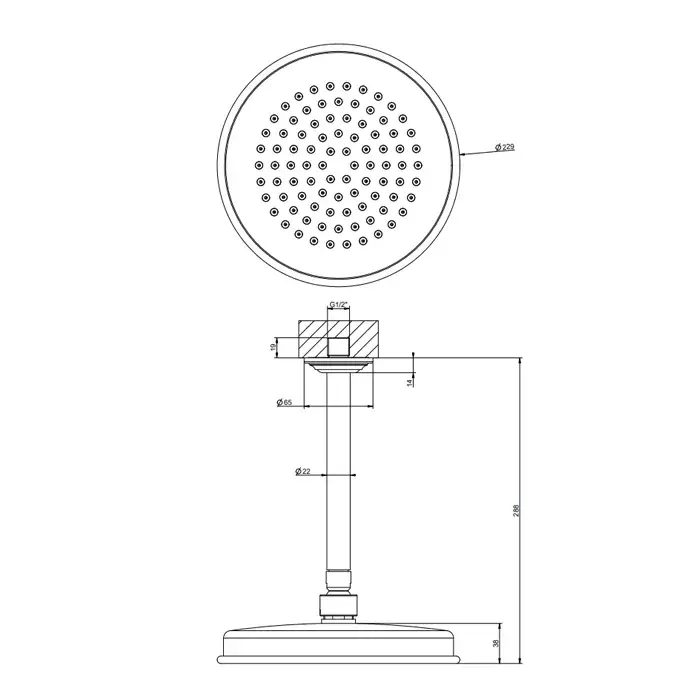 Gessi Venti20 Верхний душ 22,9 см 1 вид струи, кронштейн потолочный 28,8 см, цвет: chrome 65152#031