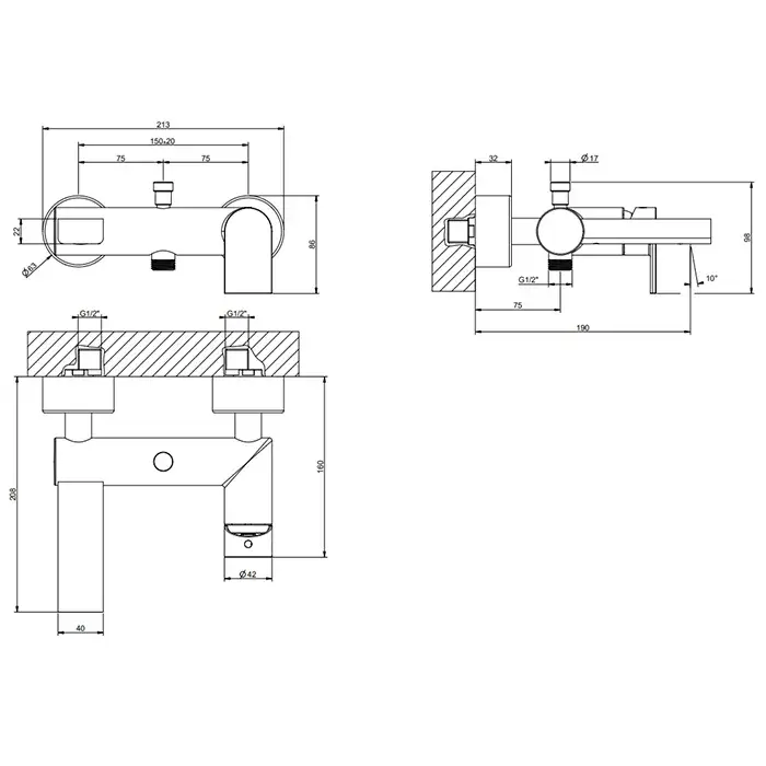 Gessi Via Manzoni Смеситель для ванны на 2 потребителя, излив 18,9 см, цвет: chrome 38613#031
