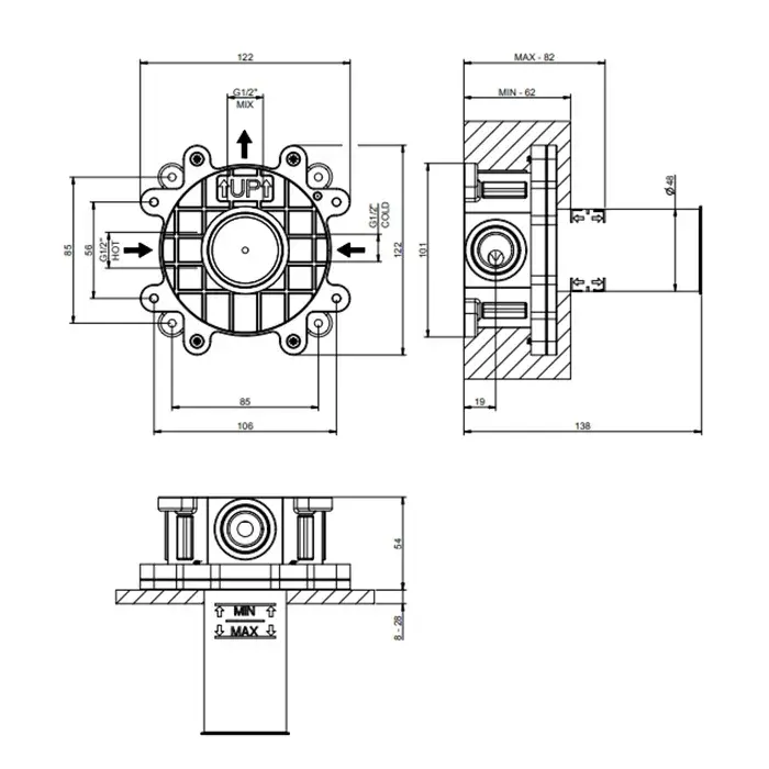 Gessi Via Manzoni Встраиваемая часть для смесителя для душа на 1 потребителя, цвет: chrome 38315#031