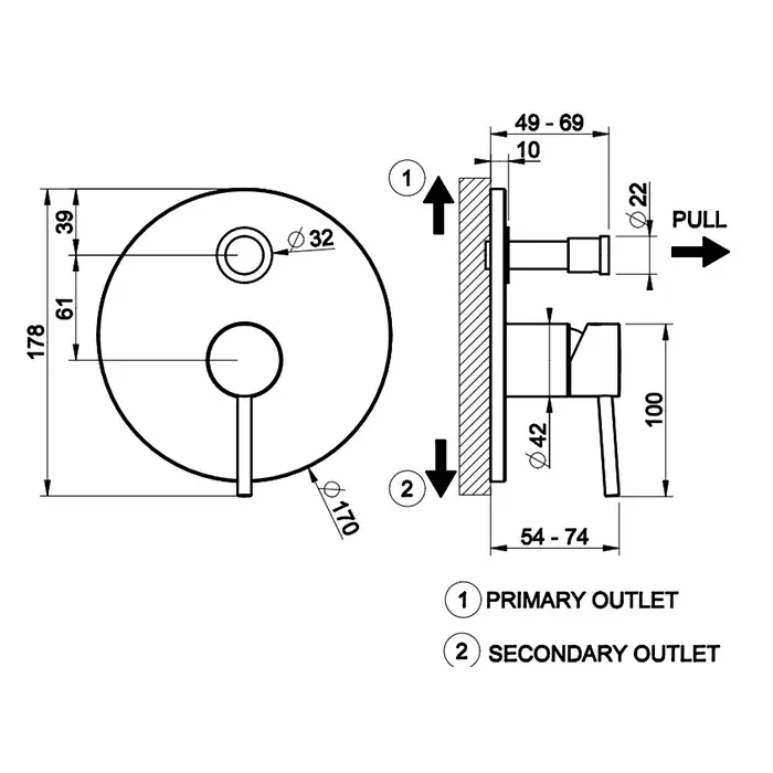 Gessi Via Tortona Термостат для ванны встраиваемый, 2 потребителя, запорный вентиль, цвет: chrome 38777#031
