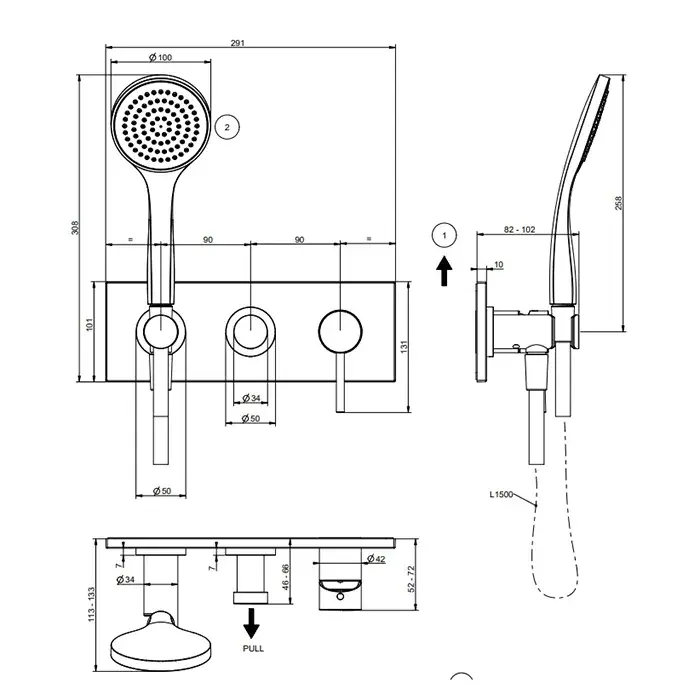 Gessi Via Tortona Смеситель для душа встраиваемый, внешняя часть, с ручным душем, цвет: matte black 44829#299