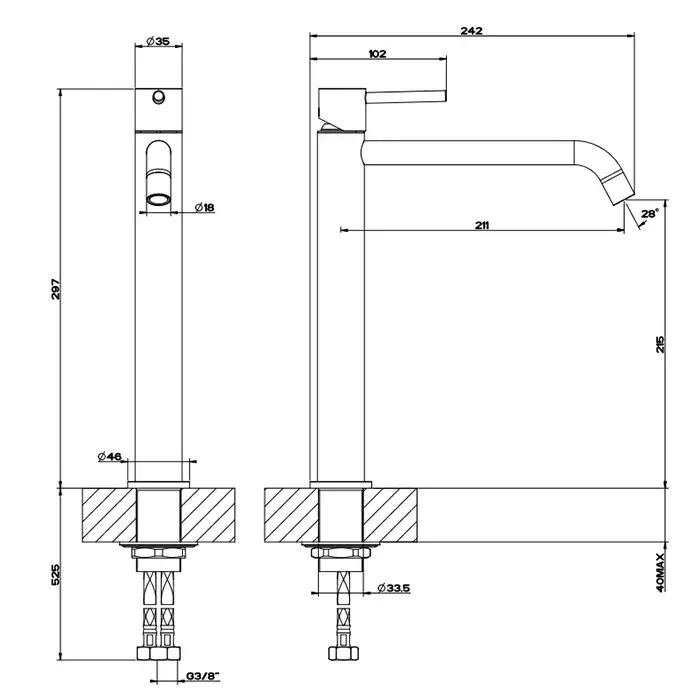 Gessi Via tortona Смеситель для раковины высокий без донного клапана однорычажный, цвет: chrome 18606#031