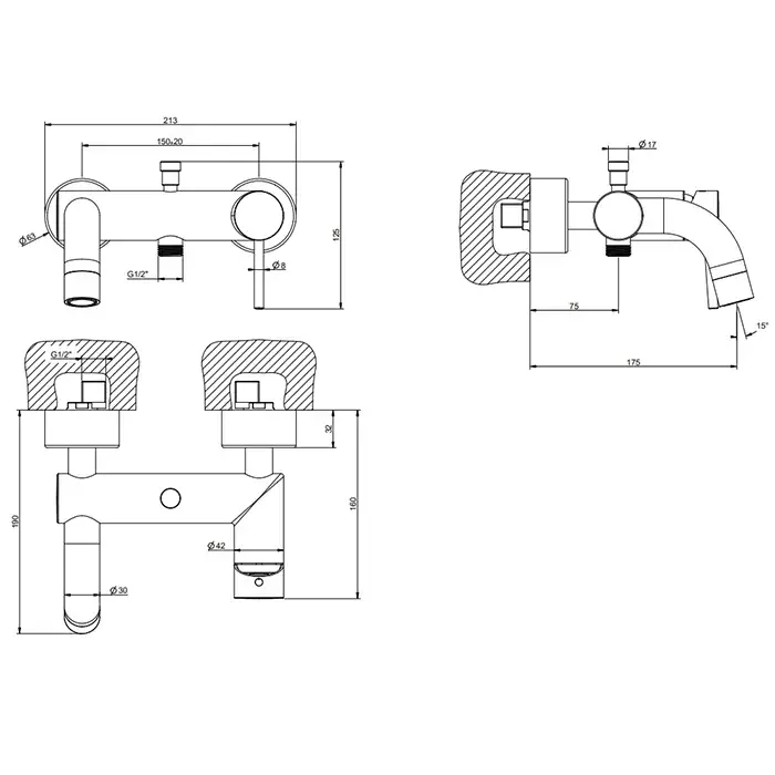 Gessi Via Tortona Смеситель для ванны на 2 потребителя, излив 17,5 см, цвет: chrome 18613#031