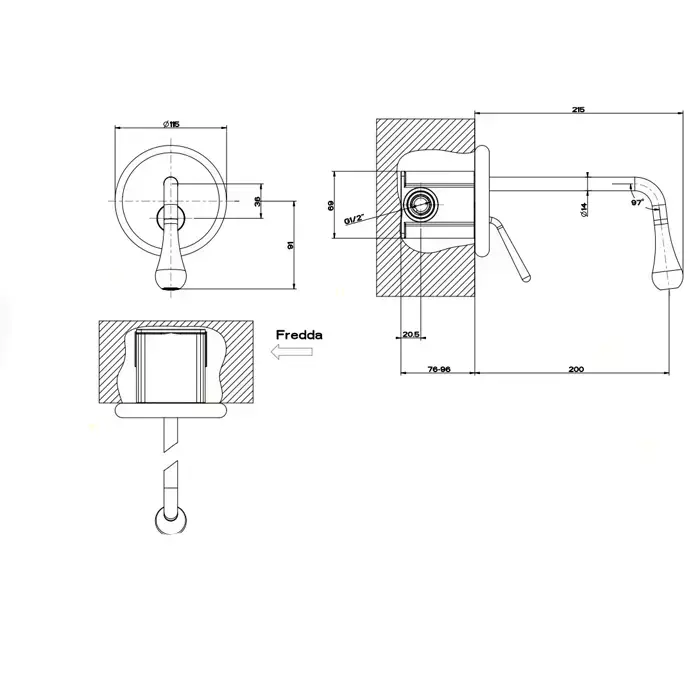 Gessi Goccia Внутренняя часть встраиваемого однорычажного смесителя для раковины с изливом