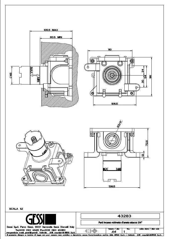 Gessi Внутренняя часть запорного крана для термостатического смесителя 43283#031