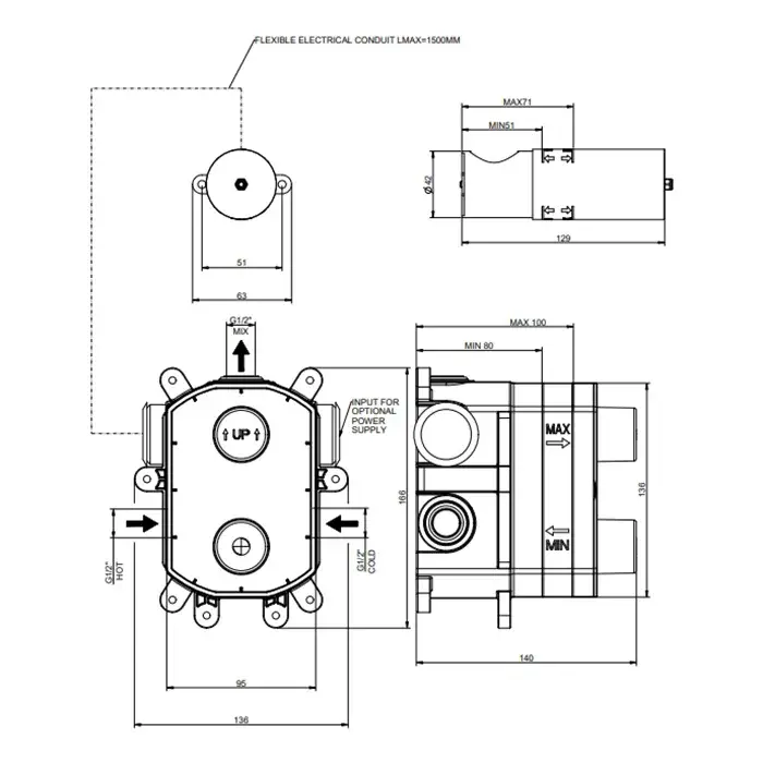 Gessi Встраиваемая часть для настенного электронного смесителя, цвет хром 44679#031