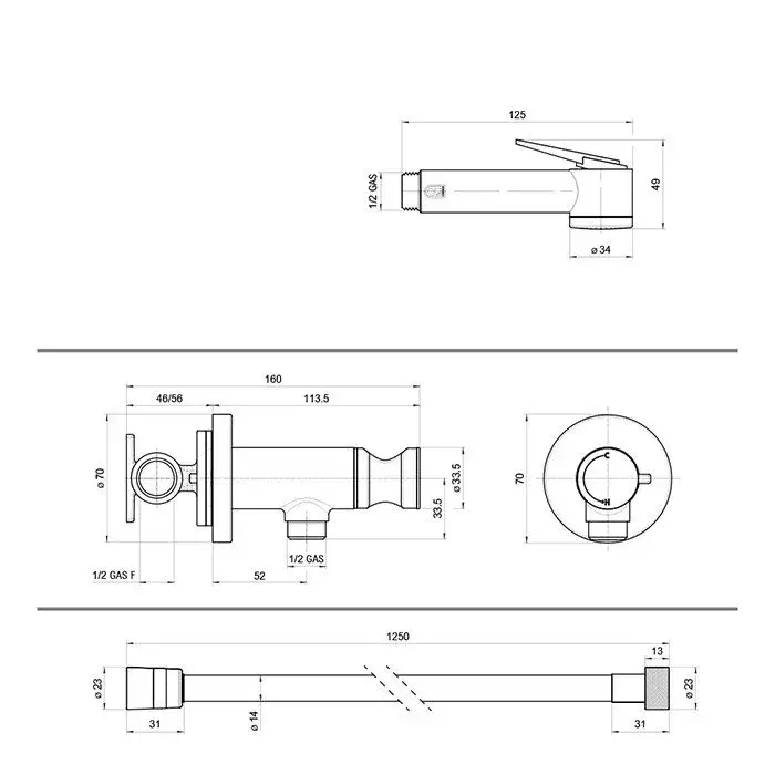 Гигиенический душ Bossini Paloma E37015B00030015 хром