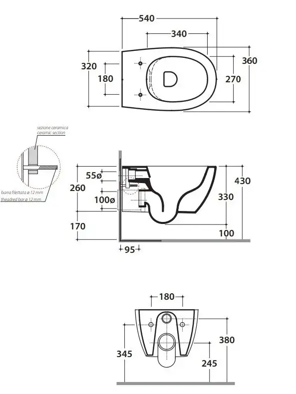 Globo 4ALL Унитаз подвесной, 54х36см, безободковый, с системой скрытого крепежа, цвет: felce