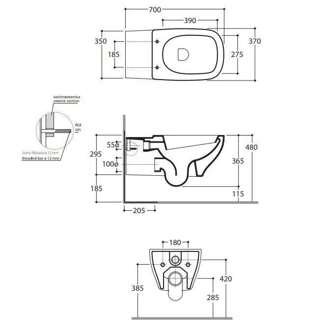 Globo Argento Унитаз подвесной без крышки, с креплением, 37x70 см, цвет: белый глянцевый GEAS2BI