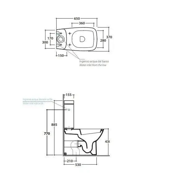 Globo Daily Унитаз моноблок 65х37х43см, универсальный слив, с бачком-подвод воды сбоку, цвет: белый