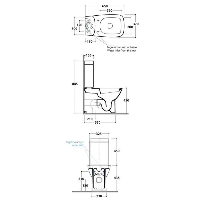 Globo Daily Унитаз моноблок 65х37х43см, универсальный слив, с бачком-подвод воды справа/слева снизу, цвет: белый