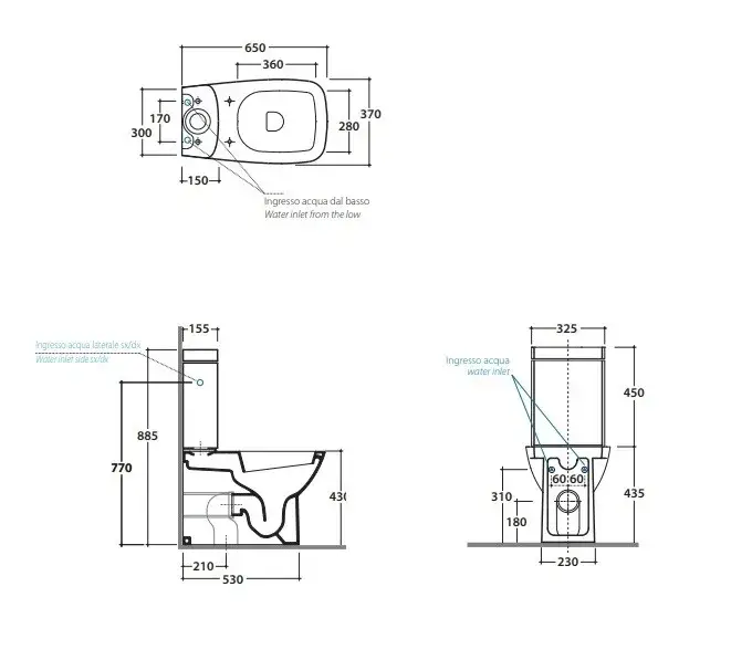 Globo Daily Унитаз моноблок 65х37х43см, универсальный слив, с бачком-подвод воды справа/слева снизу, цвет: белый