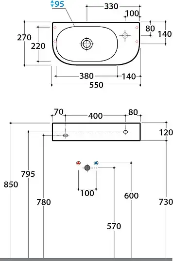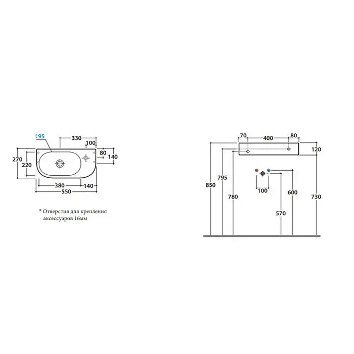 Globo Forty3 Раковина подвесная 55x27 см, без перелива, с креплением, без д/к, цвет: белый глянцевый SCT55BI