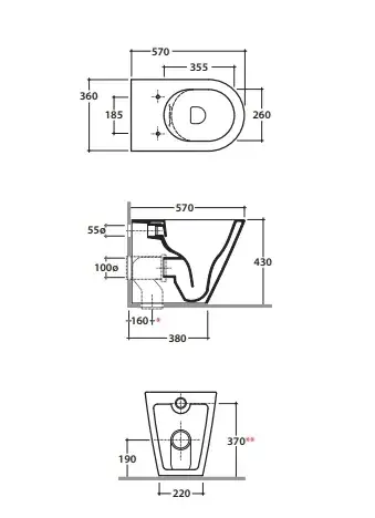 Globo Forty3 Унитаз приставной безободковый, без крышки, 36x57 см, цвет: белый глянцевый FO004BI