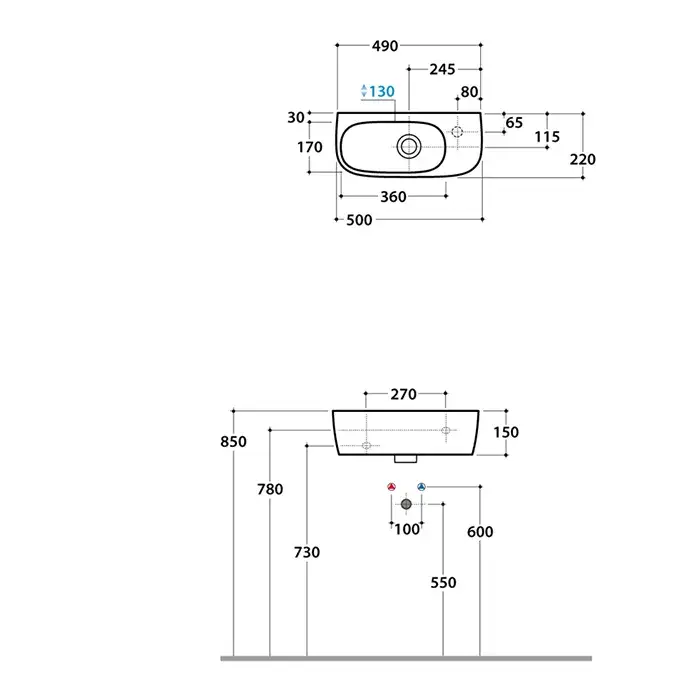 Globo Genesis Раковина подвесная 50x22 см, с креплением и переливом, без д/к, цвет: белый глянцевый GE046BI