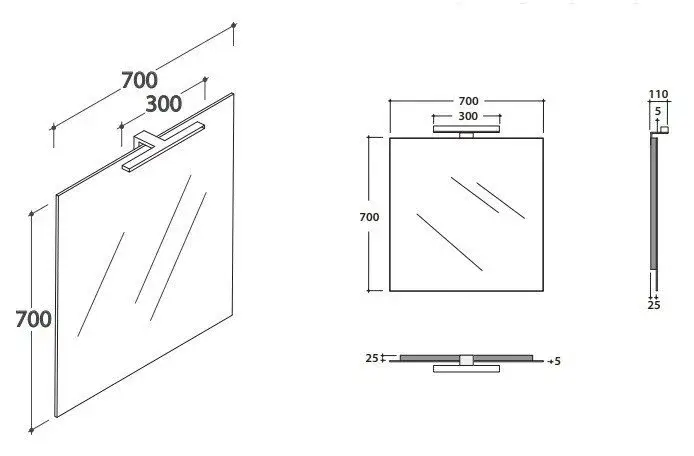 Globo Grace Зеркало 70х70 см, с полированными краями, LED лампой 30 см, без переключателя BPL070