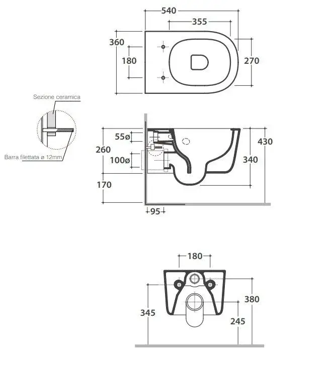 Globo Lalita Унитаз приставной 36x54 см, безободковый, с креплением, цвет: белый глянцевый LT001BI