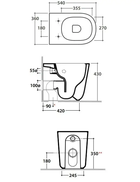 Globo Lalita Унитаз приставной 36x54 см, безободковый, с креплением, цвет: белый глянцевый LT001BI