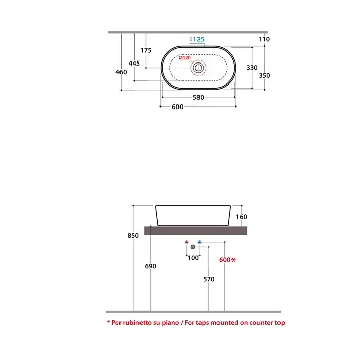 Globo Le Pietre Раковина чаша 60х35х16h см, без перелива, без д/к, цвет: peperino grigio FO061PG