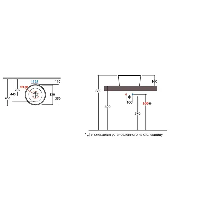 Globo T-Edge Раковина накладная 60х41см., без отв., цвет: Smoke
