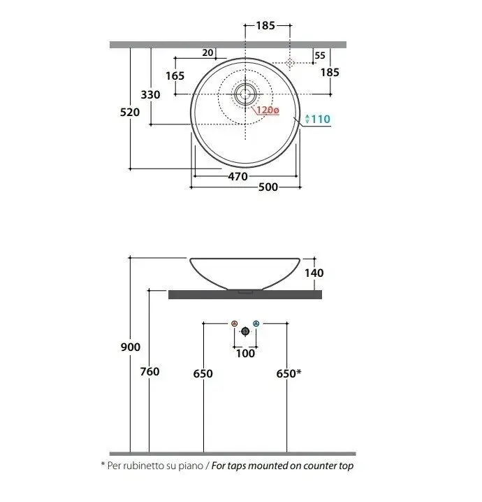 Globo Le Pietre Раковина чаша d50x14h см, без перелива, с д/к, цвет: peperino grigio LAT50PG