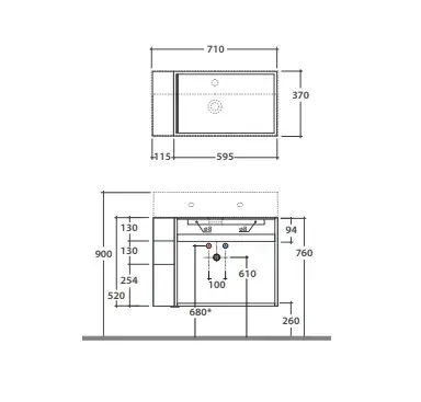 Globo Opi Консоль для раковины подвес. 1 отв. под смеситель справа 65x36x25h см, цвет: черный мат. OP007TBI