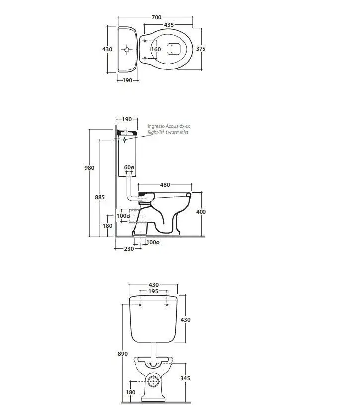 Globo Paestum Унитаз напольный 58х37,5см, слив пол, с высоким бачком, трубой, цвет: белый/хром