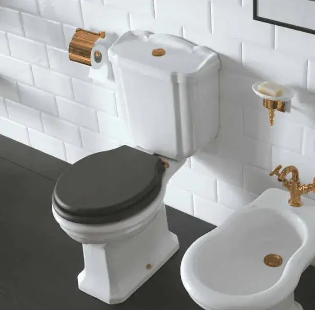 Globo Paestum Унитаз напольный 58х37,5см, с высоким бачком, трубой, цвет: белый/бронза