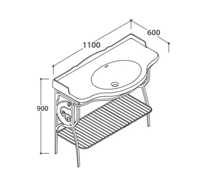 Globo Paestum Консоль для раковины напольная металлическая 103x61x81h см, цвет: состаренный металл PA036