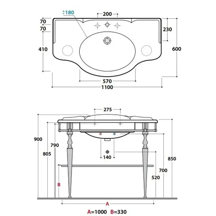 Globo Paestum Консоль для раковины напольная металлическая 110x60x80,5h см, цвет: хром PATC22 cr
